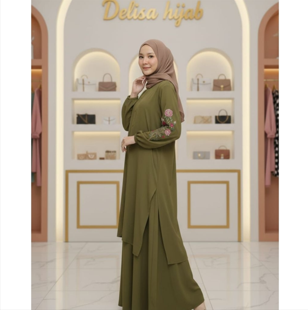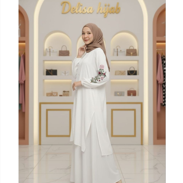 -Dengan bahan Exclusive Twill disertai aksen bordir cantik dilengan yang elegant